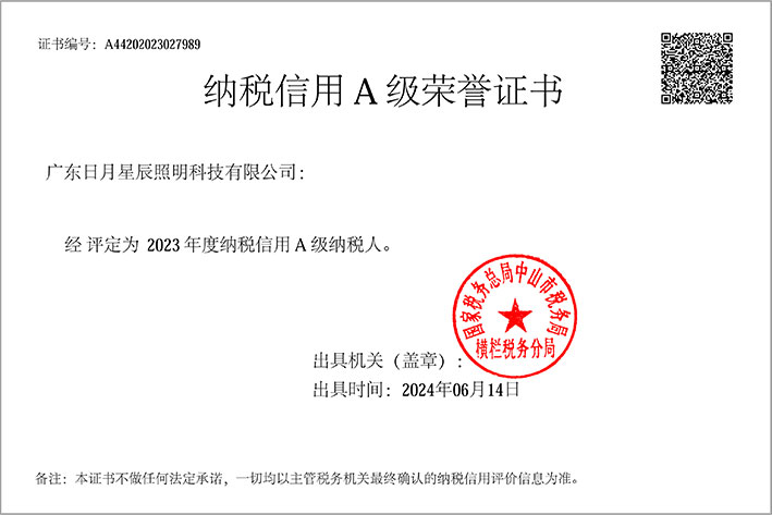 2023年度纳税信用A级荣誉证书