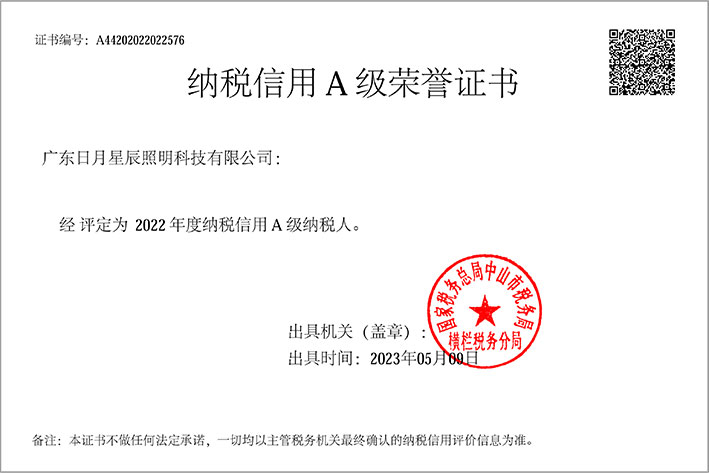2022年度纳税信用A级荣誉证书